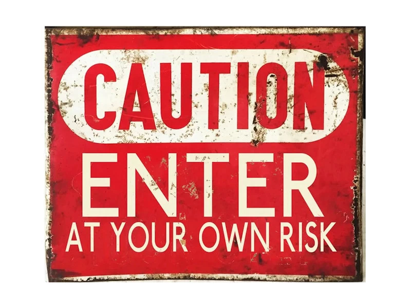 Caution Enter At Your Own Risk Vintage Metal Sign
