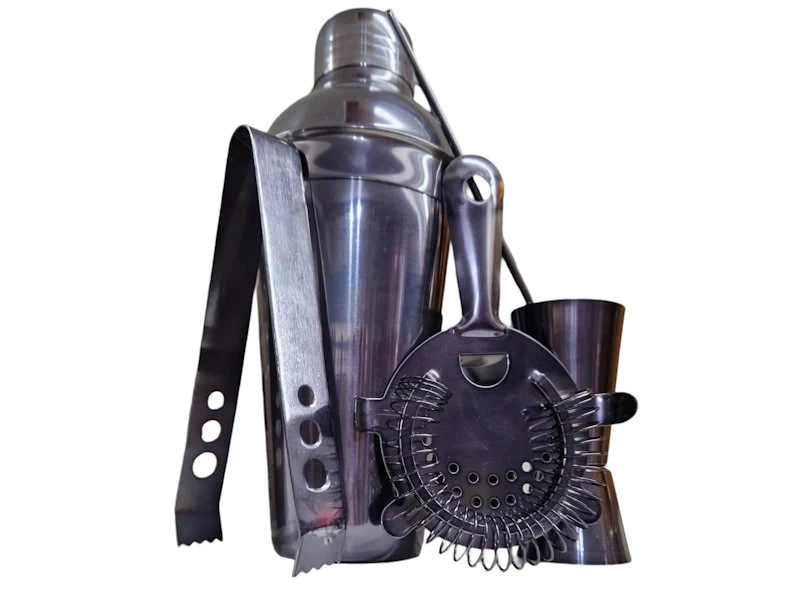 Black Polished Cocktail Shaker Set – 5 Piece Stainless Steel Barware Kit