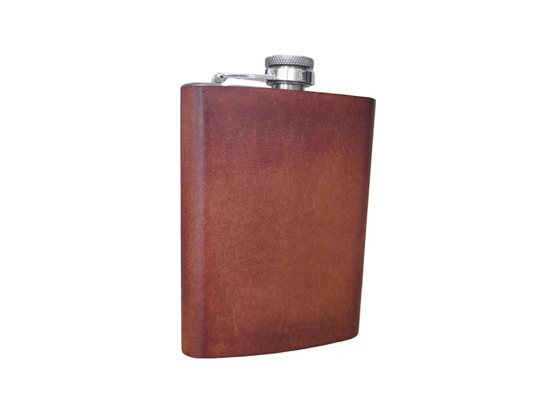 Leather Wrapped 8oz Stainless Steel Hip Flask