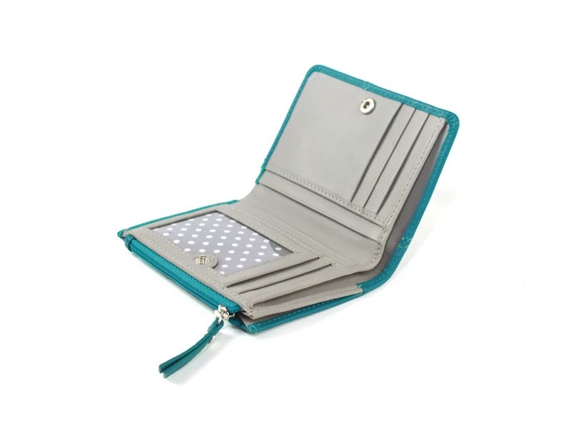 This elegant leather purse offers the perfect balance of style and practicality. The smooth blue leather exterior is beautifully complemented by a soft blush interior, creating a design that feels both fresh and refined. Compact enough to slip into any handbag, it’s ideal for everyday use or travel.