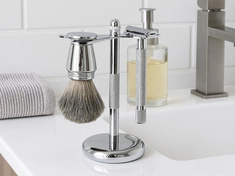 An elegant addition to any grooming ritual this chrome shaving set blends tradition, precision, and polished style.