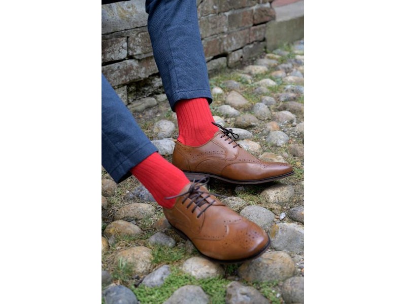These classic red ribbed bamboo socks offer a confident burst of colour with their clean rib structure and subtle embroidered panda motif. The rich shade works beautifully with both smart and casual outfits, adding a refined yet expressive touch.