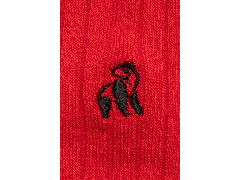 Bold classic red ribbed bamboo socks with a neat embroidered panda logo.