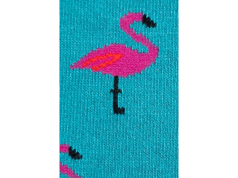Step into playful elegance with these flamingo bamboo socks, featuring vivid pink flamingos standing tall against a turquoise background. Finished with pink heels, toes and cuffs, they are a lively burst of colour that adds fun and personality to any outfit.