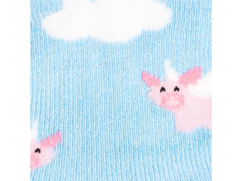 Soft sky blue bamboo socks covered with cheerful flying pigs and fluffy clouds for a little touch of magic.