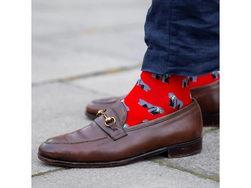 These eye catching socks bring a playful jungle edge to your outfit, with detailed gorilla motifs standing proudly against a vivid red background. Perfect for animal lovers and those who enjoy adding a little fun and character to their accessories.