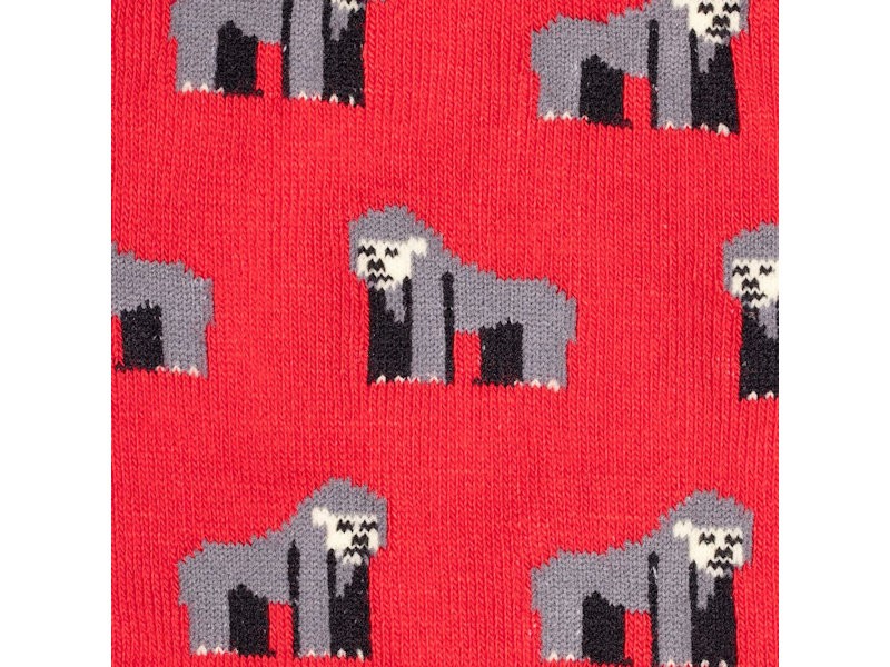 Make a bold statement with these vibrant red bamboo socks patterned with striking grey gorillas.