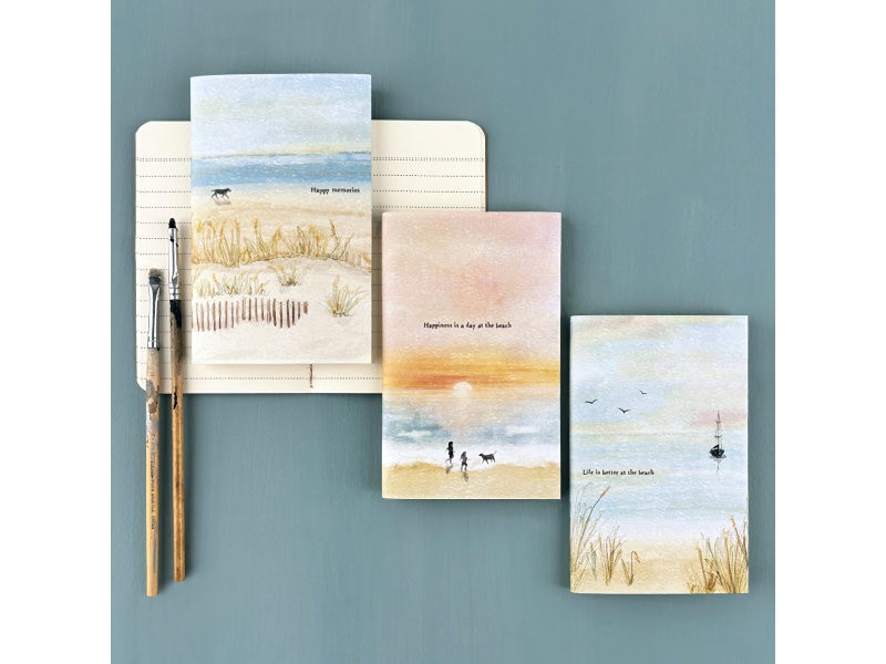 A gentle, pocket sized notebook for treasured thoughts and moments, with a calming beach illustration that whispers of simpler days and salt kissed air.