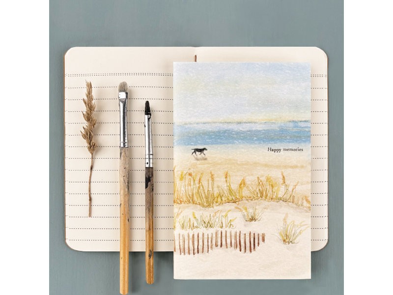 This beautifully illustrated A6 notebook offers the perfect place to capture peaceful reflections, sunny holiday notes or moments that make you smile. The soft cover features a tranquil beach scene with a dog in the distance, watercolour style grasses, and the words “Happy memories” printed simply on the horizon. Inside are 60 lined pages, ready for anything from journaling to jotting down bucket lists.