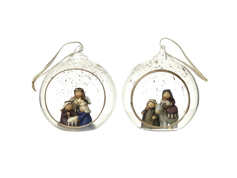A serene glass bauble featuring the Holy Family, bringing gentle reverence and warmth to your Christmas tree.