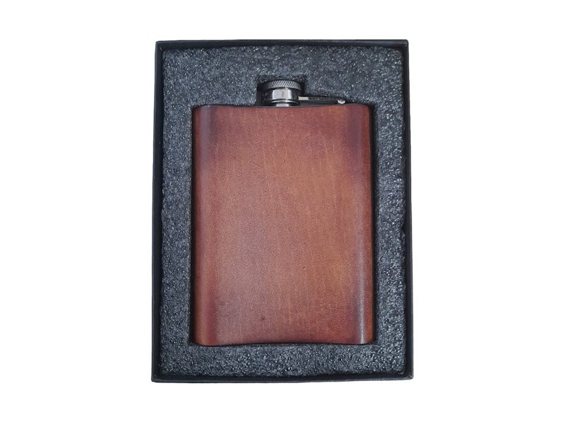 Leather Wrapped 8oz Stainless Steel Hip Flask