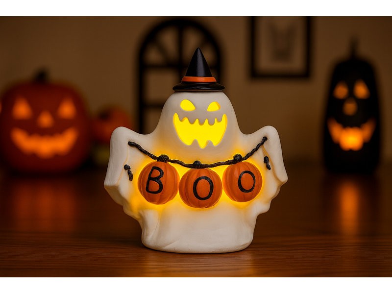 Crafted from sturdy resin and fitted with an LED light, this ghost will bring a warm glow to mantels, shelves, or windowsills. With batteries included, it’s ready to shine straight from the box. Whether used as a standalone ornament or paired with other decorations, it’s sure to delight guests and add a magical atmosphere to your spooky celebrations.