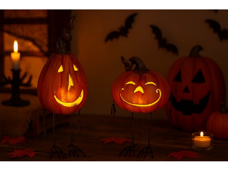 A glowing pumpkin character with spindly legs and a cheeky grin to brighten your Halloween nights.