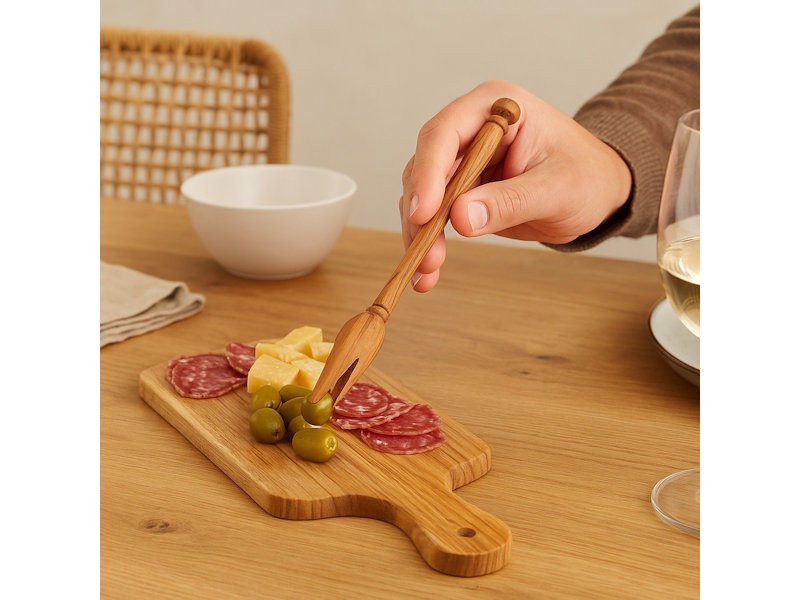 Bring a touch of Mediterranean charm to your table with this handcrafted olive pick, carved from richly grained olive wood. Its elegant prongs are designed to grip and lift olives, cheeses, or charcuterie with precision, making it as practical as it is beautiful.