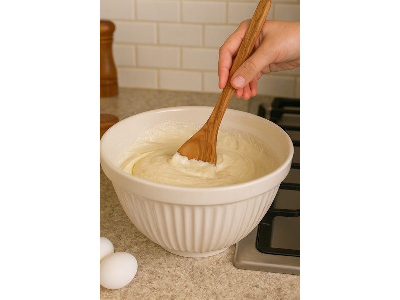 - Smooth rounded bowl for gentle stirring Long handle for comfort and control Durable and naturally antibacterial