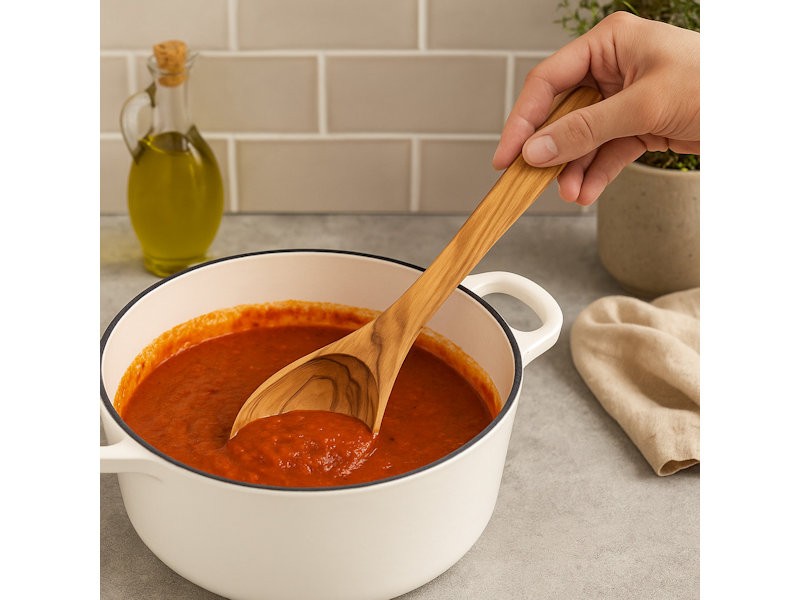 Its smooth, well balanced handle sits comfortably in the hand, allowing for effortless stirring and serving. Naturally durable and antibacterial, olive wood is a trusted favourite for cooks who value both style and substance. With every use, this spoon adds a touch of Mediterranean warmth to everyday meals and special gatherings alike.