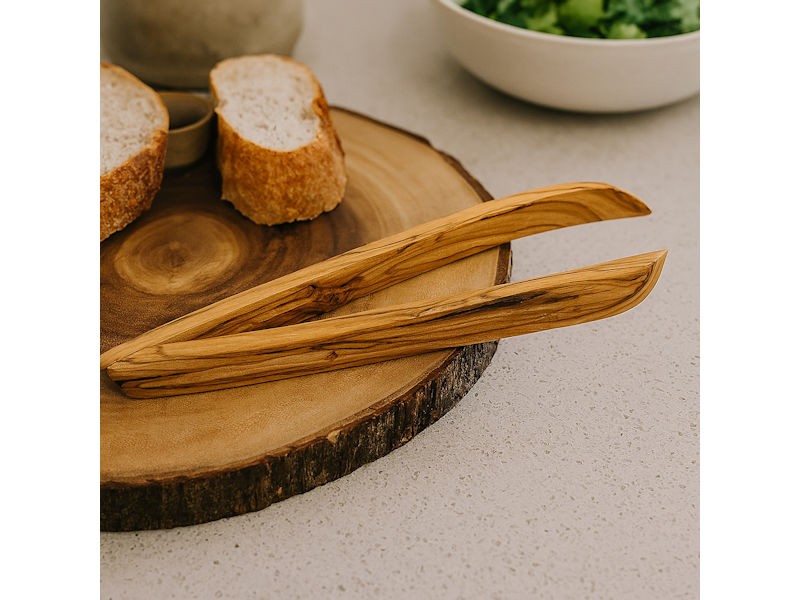 Elegant, tactile and beautifully grained, these handcrafted olive wood tongs bring natural charm to everyday serving.