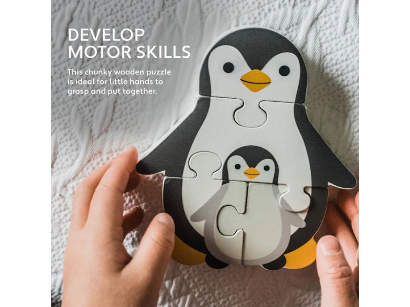 This adorable Penguin Wooden Puzzle is perfect for introducing toddlers to their first puzzle adventures. With its gentle colours and heartwarming design featuring a parent and baby penguin, it encourages hand eye co-ordination, fine motor skills and early problem solving in a fun and engaging way. The smooth, chunky pieces are easy for small hands to hold and fit together, building confidence with every completed puzzle.