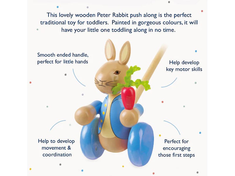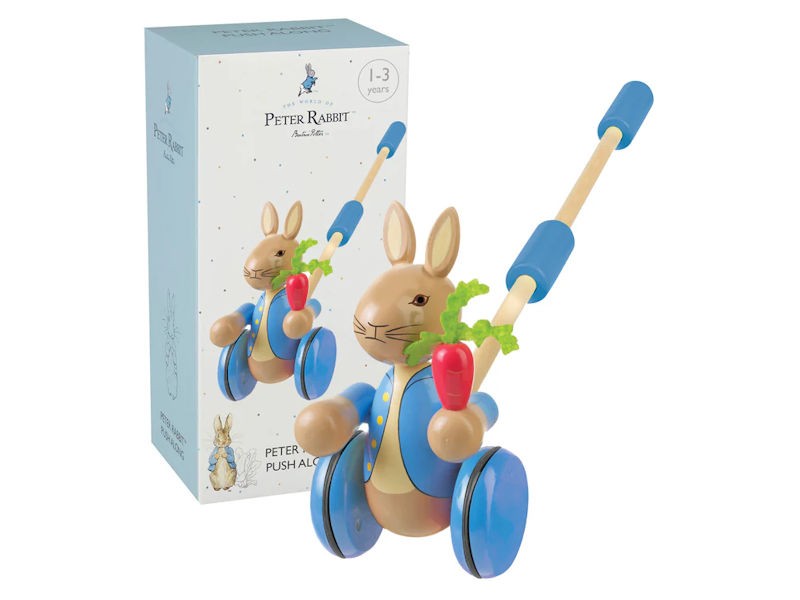 A classic Peter Rabbit push along toy, bringing Beatrix Potter’s timeless character to life for little walkers.