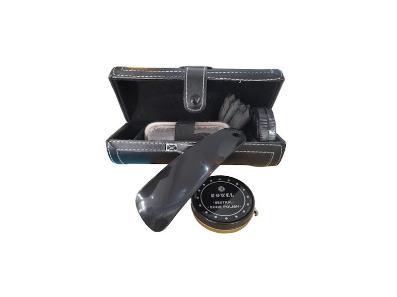 - Includes neutral polish, cloth, brushes, and shoehorn