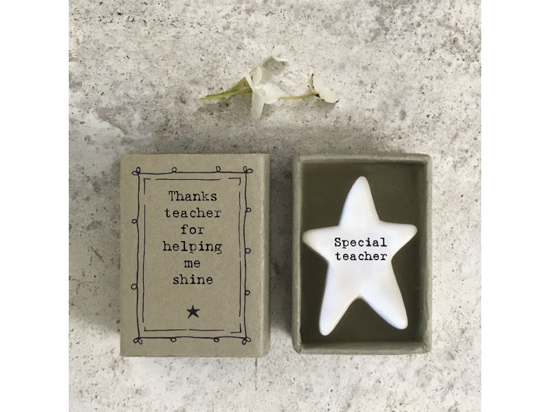 A thoughtful little keepsake to show appreciation for a brilliant teacher. A porcelain star tucked into a sweet matchbox with a heartfelt message.