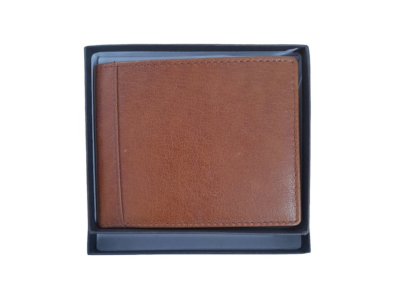 Tan Brown Leather Bi-Fold Wallet with Gift Box