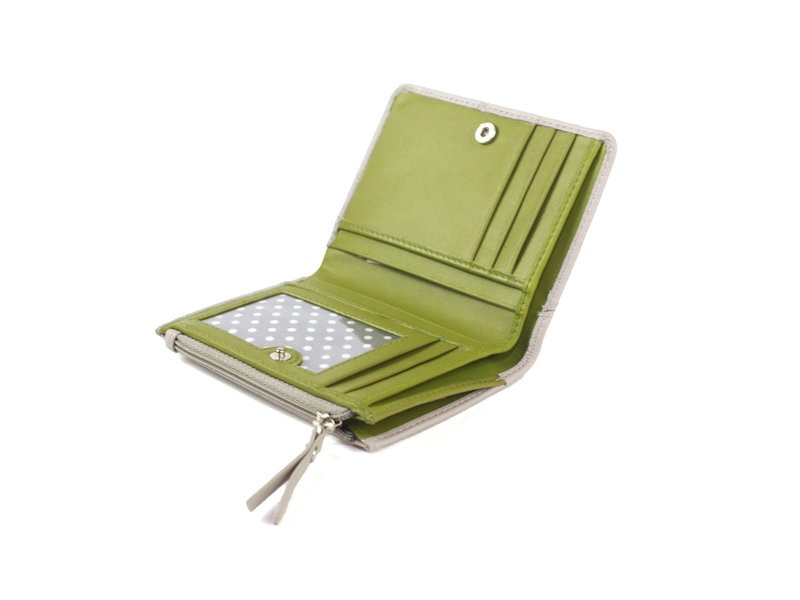 Chic, compact, and perfectly balanced in design, this two tone leather purse combines elegance with everyday practicality. The smooth taupe exterior feels soft to the touch, while the contrasting green interior adds a lively pop of colour. Designed for effortless organisation, it’s an ideal companion for workdays, weekends, and everything in between.