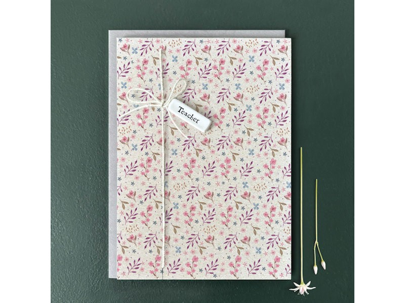 Say thank you in a way that feels extra special with this handmade card featuring a soft floral design and a white porcelain tag reading "Teacher". The card is tied with twine for a natural finish, with the tag acting as a lovely keepsake they can cherish long after the school year ends.