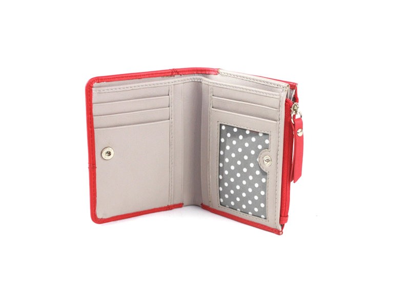 A beautifully compact purse in vibrant watermelon leather with a soft ivory interior and polished modern finish.