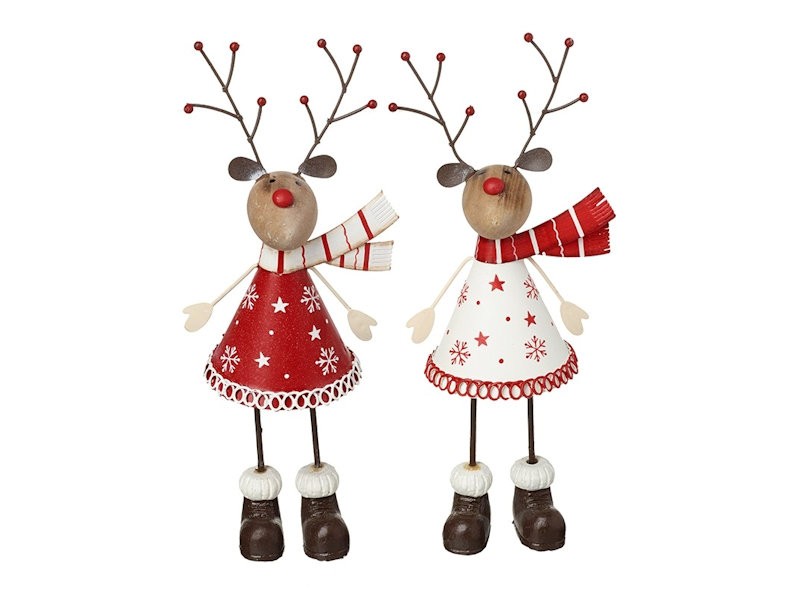 This delightful white metal reindeer adds warmth and whimsy to your festive decorating, with its sweet expression, cosy striped scarf and cheerful snowflake dress design. The playful handcrafted style makes it a joyful addition to shelves, mantels and Christmas displays, filling your home with seasonal charm.