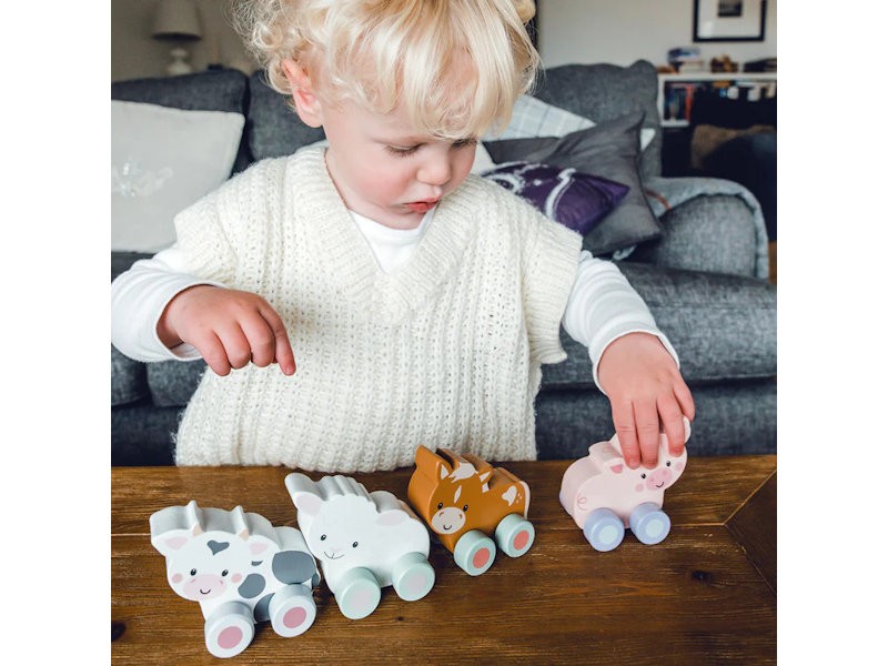 Made from sturdy, sustainable wood and finished with non toxic paints, it’s designed with care to be both safe and long lasting. Ideal for developing coordination and motor skills, this sheep also makes a thoughtful gift or keepsake, especially when paired with the rest of the farmyard friends.